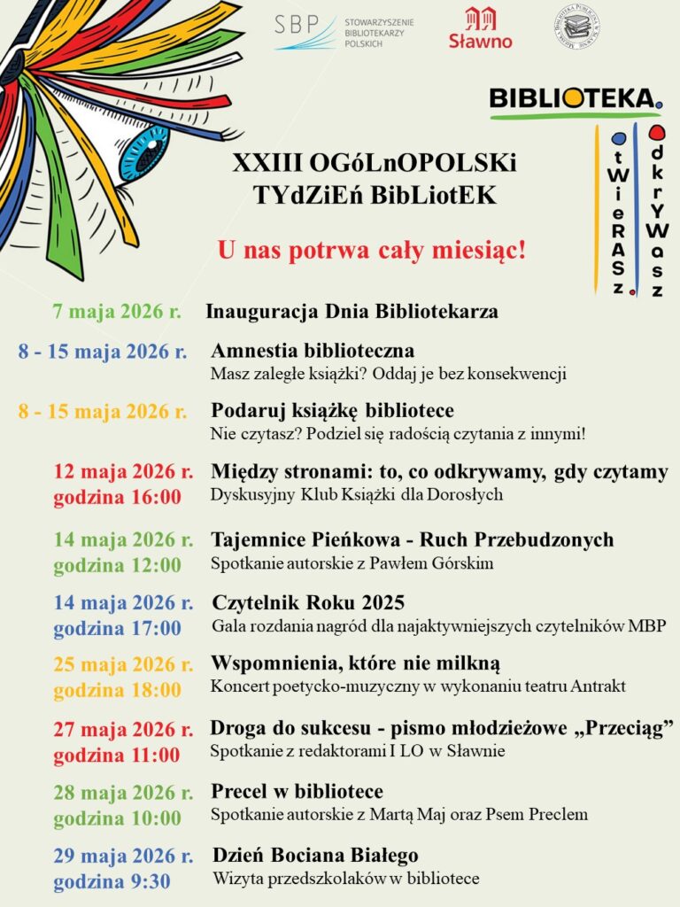 Miejska Biblioteka Publiczna w Sławnie zaprasza na XXIII Ogólnopolski Tydzień Bibliotek 2026!